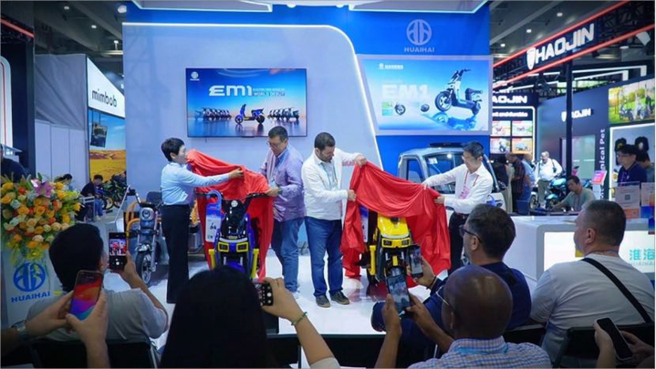 10月16日,淮海控股集团全新智能电动两轮车EM1在广交会完成全球首发,不仅举办专场发布会,还受邀亮相广交会官方新能源与智慧出行新品发布会。这款融合智能电驱、轻量化车身与全场景设计的新品,搭载1200W高效电机,集成多项智能系统,通过适配全球路况的模块化组合,在续航、安全与人机交互方面实现全面突破。新品亮相即引发全球采购商追捧,客商络绎不绝,咨询洽谈场面火爆。活动当日即拿下覆盖欧洲、中东、南美的120台实时订单,并与非洲客户签订2026年度全品类10万台战略合作协议。
