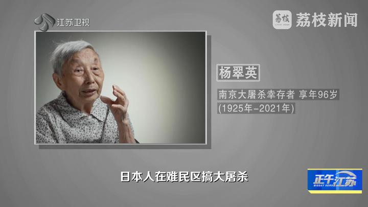 南京大屠杀幸存者杨翠英(享年96岁,1925年7 月3日-2021年1月28日):“日本人在难民区搞大屠杀,杀了我爸爸的时候我看到的。他们有这么长的枪、这么长的刺刀,就插到枪头上戳。侵华日军从我爸爸身上把小孩抢下来摔在地下,拿脚踩死的。三个大人都是被刺刀戳死的。”