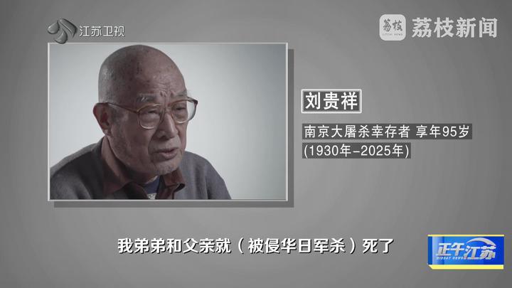 南京大屠杀幸存者刘贵祥(享年95岁,1930年7月23日-2025年5月2日)说:“真是家败人亡了。家烧掉了,什么都没有。我弟弟身上烧了半个身子,我母亲的腿也烧了。侵华日军从我妈妈身上抢过来我弟弟就扔到河里去了。当时就那一会儿工夫,我们家两口人,我弟弟和父亲就被侵华日军杀死了。”