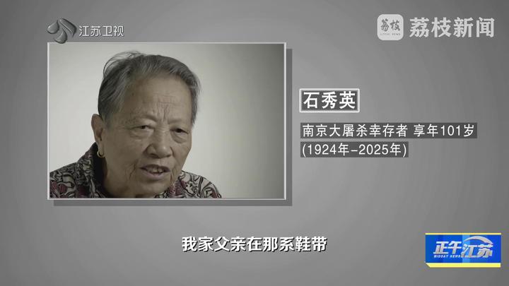 南京大屠杀幸存者石秀英(享年101岁,1924年9月26日-2025年5月15日):“我家父亲在那系鞋带,日本人回头一看就拿刺刀把他戳死了。”