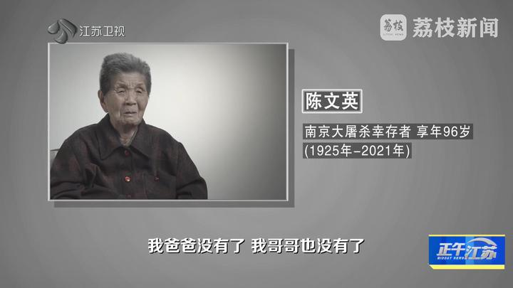 南京大屠杀幸存者陈文英(享年96岁,1925年 11月28日-2021年4月10日):“家里人没有了,我爸爸没有了,我哥哥也没有了,我三姐也没有了。我那个三姐可怜啊,她初中毕业在剪子巷老人堂当医生,是小儿科的医生。她还给我买过各式各样的衣裳。多漂亮的姑娘,多好的姑娘,给日军给糟蹋了。”