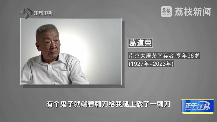 南京大屠杀幸存者葛道荣(享年96岁,1927年7月-2023年1月21日):“门突然被侵华日军踢开了。来了就对着我们吼,有个鬼子就端着刺刀给我腿上戳了一刺刀。”