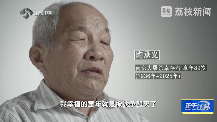 南京大屠杀幸存者陶承义(享年89岁,1936年5月24日-2025年2月15日):“我幸福的童年就是被战争毁灭了。”