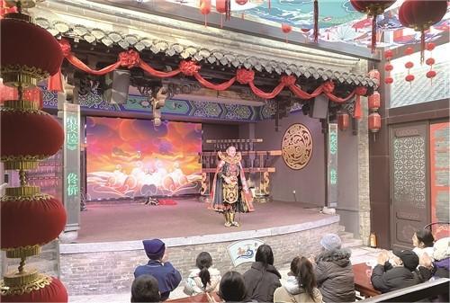 元旦以来,每个双休日下午,位于回龙窝的国潮汉风馆前都是热闹非凡。身着戏服的“陈士铎”在馆前小广场与观众近距离互动,诙谐的柳琴戏《喝面叶》唱段赢得群众阵阵掌声。