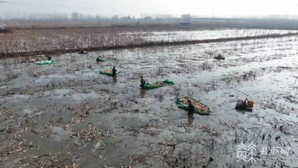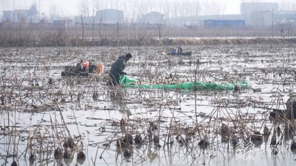 冬季寒风凛冽,然而宿迁宿豫区新庄镇振友社区的藕塘里却是一片火热的繁忙景象。挖藕工人身着厚重的皮衩,在冰冷的淤泥中寻找着丰收的果实。