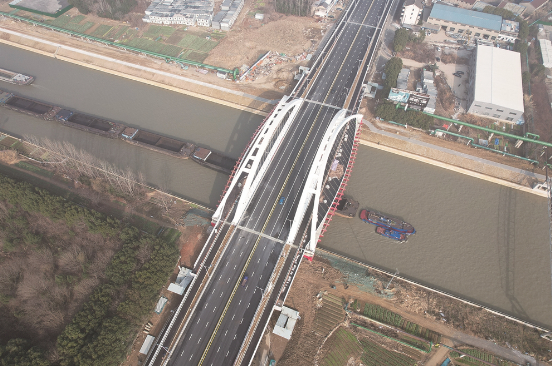在芜申线溧阳城区段航道整治工程的桥梁建设过程中,以昆仑桥为首的钢结构桥梁,大规模运用了整体吊装或大节段分幅吊装的技术。目前,芜申线溧阳城区段航道整治工程已有9座桥梁完成交工验收。