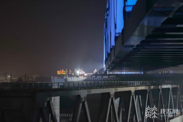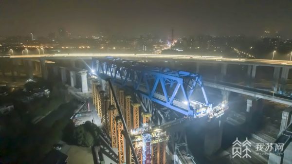 今天(1月5日)上午,记者从中国铁路上海局集团有限公司获悉,利用3个铁路夜间“天窗点”分步施工,1月5日,在新建上海至苏州至湖州铁路(以下简称沪苏湖铁路)松江特大桥春申桥施工现场,总重2972余吨的128米钢桁梁累计在516分钟内移动44.5米,逆时针旋转20°,于凌晨2点36分顺利完成空中转体,标志着沪苏湖铁路松江特大桥段建设取得突破性进展。
