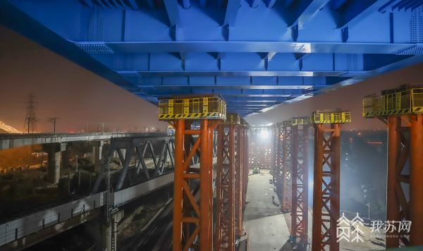 总重2972余吨移动44.5米转20° 沪苏湖铁路松江特大桥128米钢桁梁完成空中转体