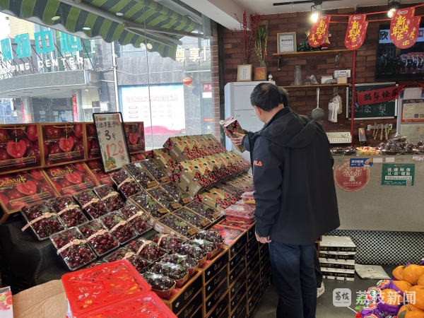 位于溧阳市溧城街道锦绣路上的一家水果店,有“果中贵族”之称的车厘子被摆放在店内显眼处。“要买点车厘子吗?脆甜爆汁口感好!”水果店老板不停招呼着客人。