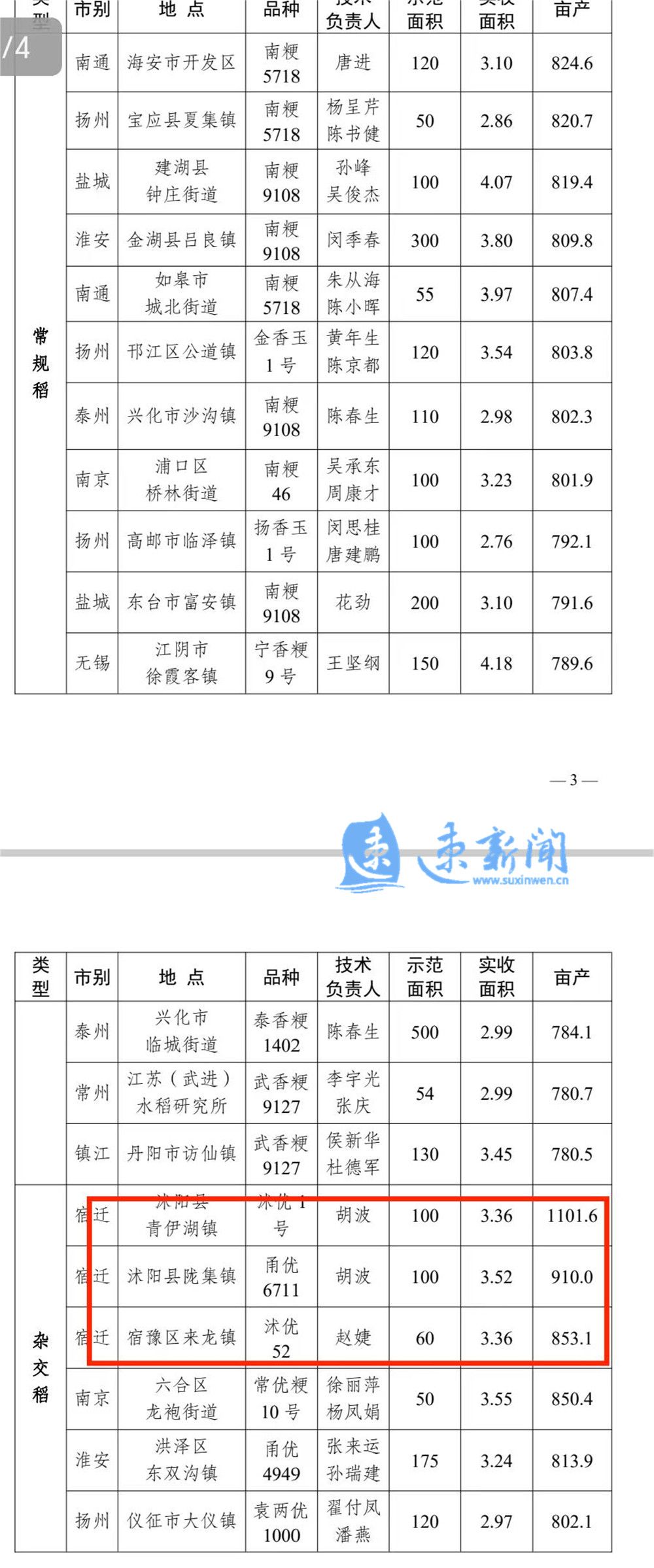全省首届优质水稻高产竞赛 杂交稻类“前三名”都来自宿迁!