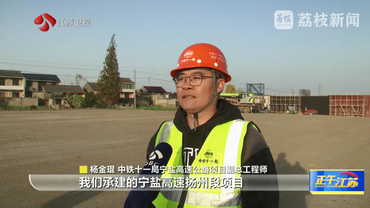 中铁十一局宁盐高速公路项目副总工程师杨金琨说:“我们承建的宁盐高速扬州段项目,400余名建设者从今年4月进入主体施工以来,已完成水泥搅拌桩近70万延米、管桩40万延米,软基处理及桥梁桩基全部完成,目前正在进行桥梁下部结构和涵洞施工,到今年年底计划完成全部工程量的50%。”