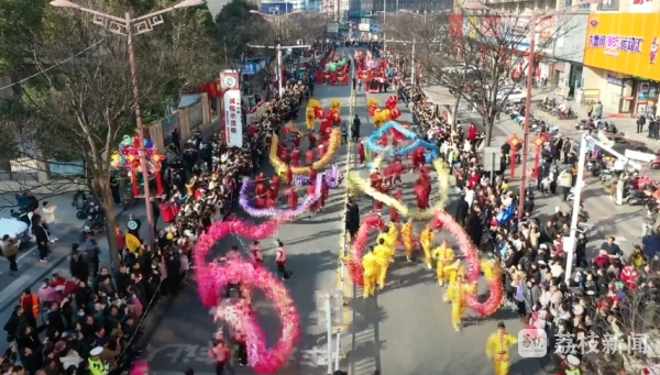 今天(2月14日)是正月初五。上午,“龙腾狮舞贺新年”民俗表演巡游活动在海安人民路与广大市民如约而至,营造出欢乐、祥和的节日文化氛围。
