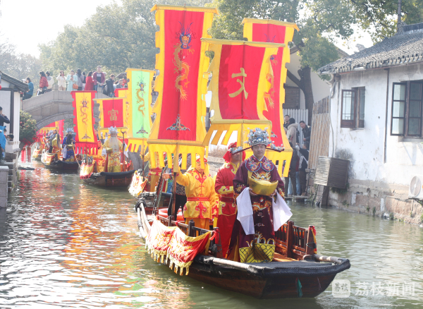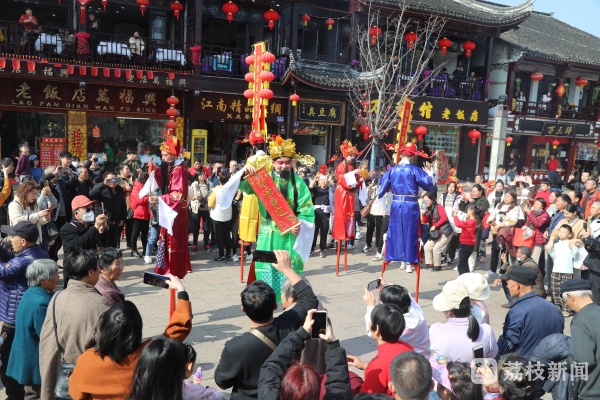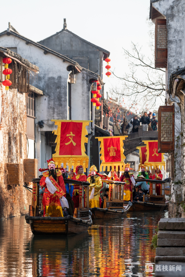 农历正月初五,水乡周庄独具江南特色的水乡迎财神活动,吸引了海内外旅客热情打卡参与。