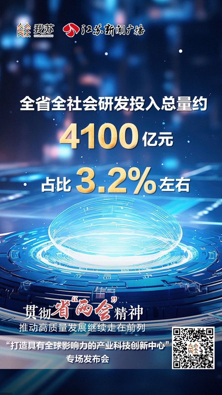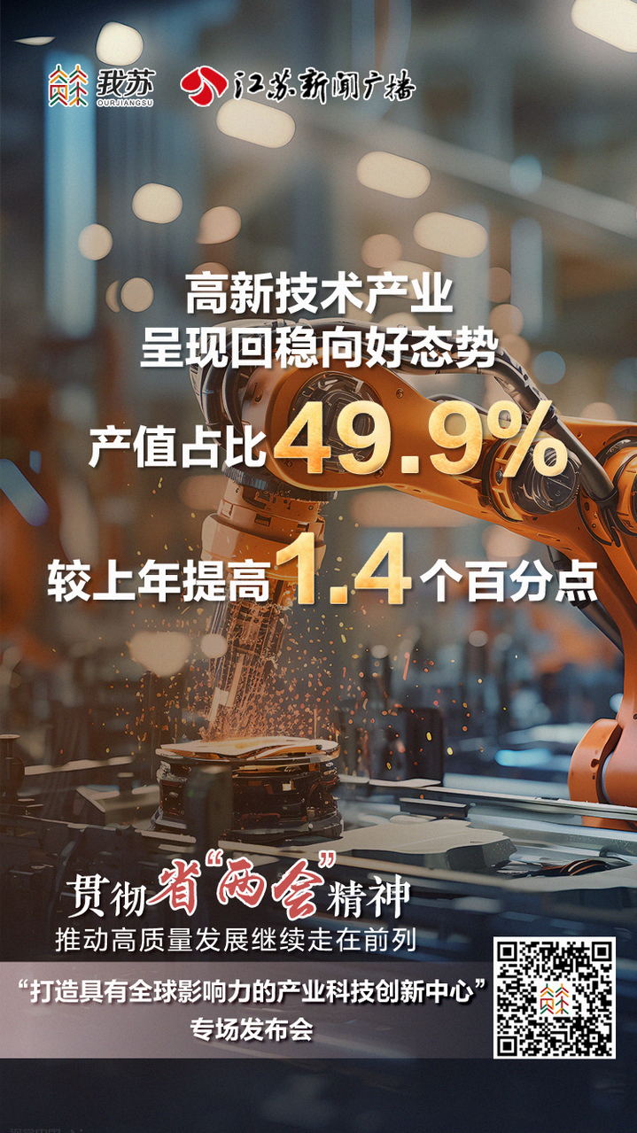 全省全社会研发投入总量约4100亿元,占比3.2%左右;高新技术产业呈现回稳向好态势,产值占比49.9%、较上年提高1.4个百分点,研发投入占比和高新技术产业产值占比均提前两年完成了省“十四五”目标;苏南国家自主创新示范区GDP总量2.1万亿,苏州工业园区等4家高新区进入全国前20强……过去一年,江苏产业科技创新中心建设取得明显成效,为推动全省经济运行率先整体好转提供了强有力的支撑。