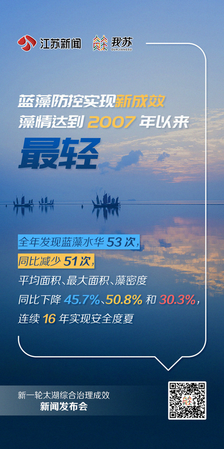 2023年,太湖水质藻情达到2007年以来最好水平,连续16年实现安全度夏,主要体现为“三新三最”。