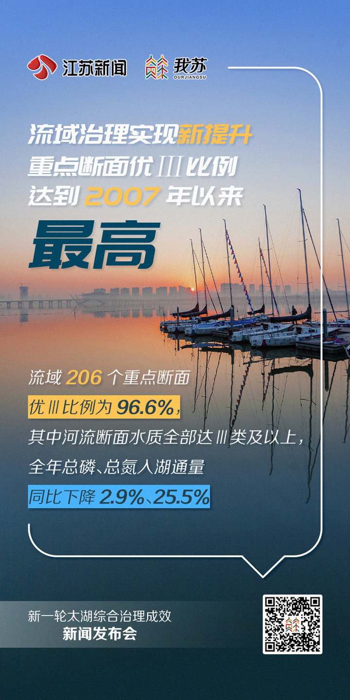 我苏客户端讯 2月27日,江苏省政府召开新闻发布会,省生态环境厅等部门介绍了2023年新一轮太湖综合治理成效。