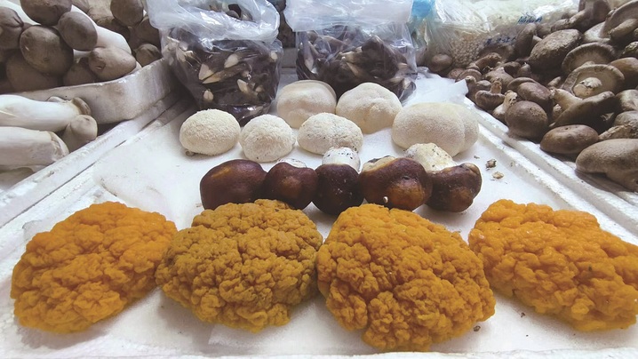 人们除了采购“龙元素”,年夜饭的时令味里也增加了选项。“今天看到有销售金耳、松茸、绣球菌、猴头菇这几类高端食材,今年准备将年夜饭菜单换一换,加点绿色时令蔬菜,让菜色更上镜、更好吃、更健康。”市民范女士表示,她家的年夜饭清单不光增加了蔬菜,也添上了水果。“车厘子、草莓、粑粑柑,更契合青年人的口味,高脂肪的年夜饭少不得水果的解腻。”范女士说。