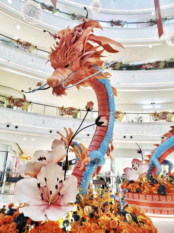 记者还了解到,全市各大商业综合体也纷纷打造了大型新春美陈,随处可见龙龍龘,春节“氛围感”已拉满。