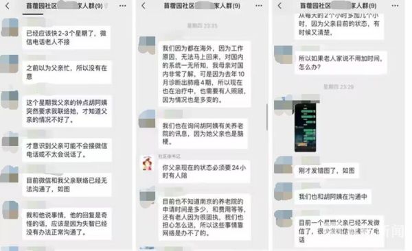 由于国外有时差,每一次与老人女儿的沟通、商讨,民警都会选择在凌晨十二点以后。据老人的女儿介绍,这个礼拜她也发现了父亲的异常反应,和老人联络他已经不太能沟通了,有着失智的情况。但老先生的女儿因为工作的原因也没办法马上回到国内,对于南京养老院的情况也不太了解,大家都很担心,不知道该怎么解决这件事。她还说,“这些事情靠网络是办不了的。”