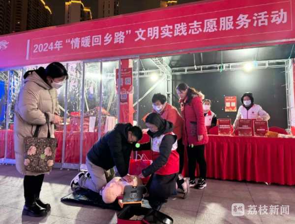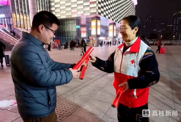 今天(2月9日),记者获悉,2024年春节前夕,无锡市红十字网络志愿队的志愿者们在火车站组织开展“情暖回乡路”春运期间关爱外来务工人员志愿服务活动,为有需要的过往旅客送春联福袋、姜茶热水、救护培训、提供咨询服务。