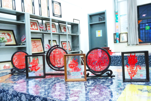 曹集中心学校老师张红是宿迁市剪纸非遗传承人,她用一张红纸、一把剪刀、一柄刻刀,便可以创作出无数幅优秀的剪纸作品。