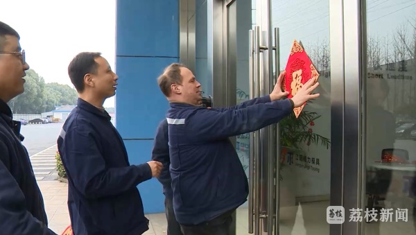 江阴精力模具工程有限公司技术总监Marco来自德国,今年会留在江阴过新年。这天一大早,Marco便在同事的帮助下,有模有样地为公司大门贴上“福”字,感受着别样的仪式感,大伙儿欢声笑语不断。