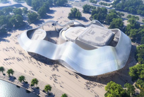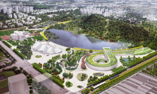 苏州狮山大剧院所在的狮山文化广场,是一个将公共文化、科技设施融入开放性山水公园的文化广场,包含苏州博物馆西馆、苏州科工馆、苏州狮山大剧院、地下空间和狮山公园5个子项目,致力于打造“东有金鸡湖、西有狮子山”的城市轴线新名片和新地标。
