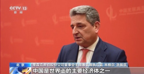 蒂森克虏伯股份公司董事会主席兼首席执行官 米格尔·洛佩兹:中国是世界上的主要经济体之一,同时对制造业极其重要。中国对跨国公司非常开放,为跨国公司提供了公平的竞争环境,给予跨国公司足够的激励,让它们留在中国,并在中国发展,这是非常积极的。