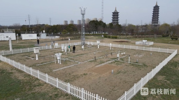 在气象科普馆旁的绿茵草地上,立着高高低低十几种仪器。气象观测员王艺润介绍:“看10米高台上面的这两个‘家伙’,一个转动非常快的就是我们的风杯,它主要是用来测量风速的。有一个指向东西方向的箭头,指向哪就代表今天是什么风,它是用来测量风向。我身后的这个是称重式传感器,它主要是用来冬季测量雪,然后雪飘落在上面测量重量,从而换算成当日的降雪量。”