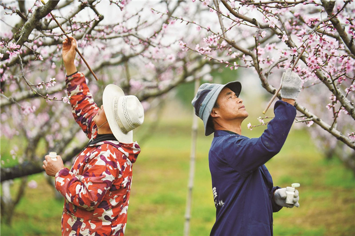 武进区雪堰镇是我市水蜜桃种植面积最大的乡镇,种植面积近2万亩,自本周起已陆续进入盛花期。“桃乡”洛阳镇的9000余亩桃树也陆续进入盛花期,桃农穿梭桃园中,为桃花进行人工授粉。