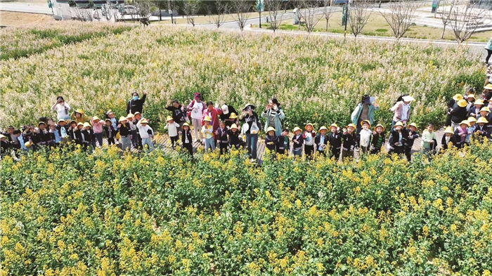要说春天百花,如今首屈一指的要算油菜花了。“放眼望去,金灿灿的一大片,置身其中,犹如进入童话世界一般!”溧阳各地12.8万亩油菜花迎春绽放,与远山、河流、公路相互映衬。而在武进区前黄镇联庆村,一簇簇油菜花沐浴在三月的暖阳下,颜色或藕粉、或雪白,有的是落日橘,有的是罗兰紫。这些彩色油菜花是从杭州农科院“进口”的。