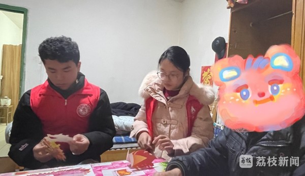 吴爷爷与志愿者们正在共同完成“舞龙”的小手工
