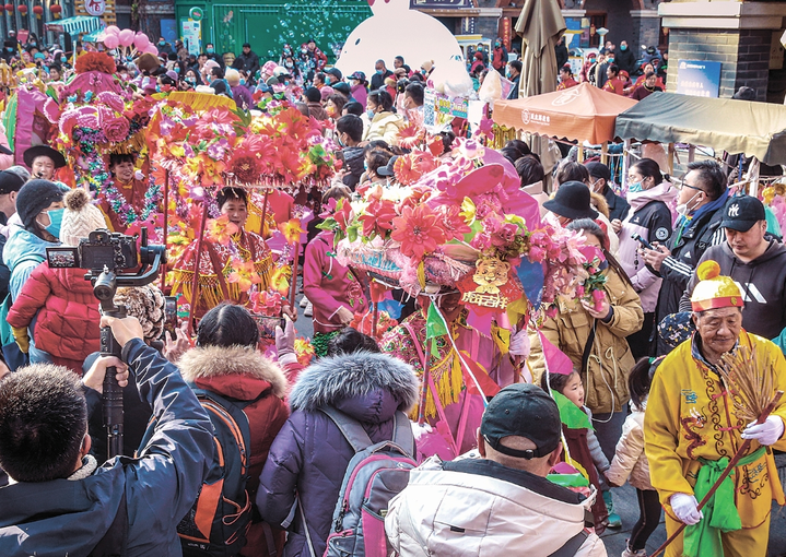 从“抖音”“小红书”等社交平台上的一些攻略还可以看到,年轻新势力也正与我市传统文化持续碰撞,成为返乡人了解故里新气象的窗口。今年春节假期,在北京工作的董女士带着孩子返连过年。大年初三她带着家人逛海州古城,游街巷,看踩街,剪纸习字……“海州变化太大了,现在都成了网红打卡地,古色古香中带着现代潮流气息。尤其是园博园灯会,一龙一凤盘踞‘龙门’之上,河中漂着荷花灯,现场观看很震撼,氛围感十足。我的孩子都不想回北京了,返程高铁票直接从大年初六,改签到大年初七。”董女士感叹。