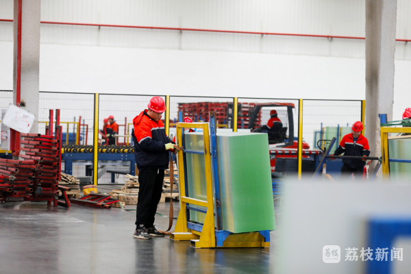 走进位于宿迁高新区的宿迁中玻新能源有限公司,只见生产车间内机声隆隆,机器飞速运转,工人们在各自工作岗位上忙碌,互相配合,紧密有序,车间内一派火热生产景象。