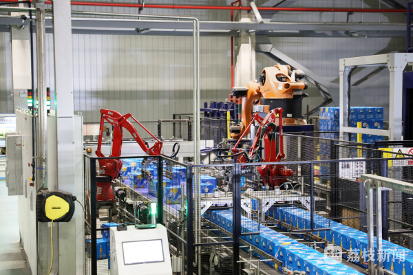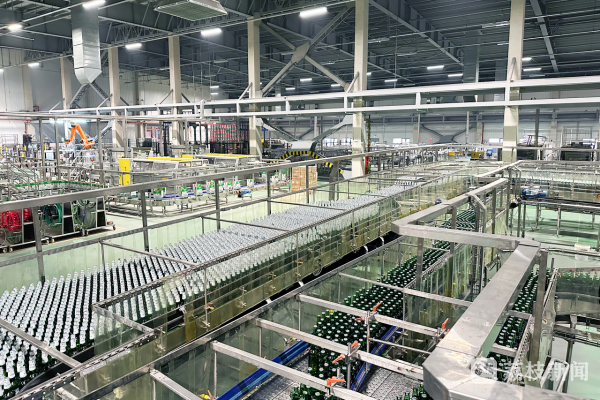 在包装线四线车间内,伴随着机器的轰鸣声,啤酒经过瓶装、贴标、包装等多个工序,从生产线上缓缓而出,每个步骤都需要严格控制工艺和质量,以保证啤酒的口感和品质。