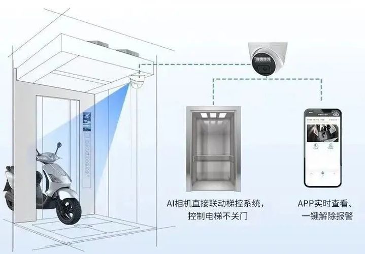 AI智能识别阻车系统主要是通过智眼电梯专用AI摄像头,自动识别电动车,一旦有电动自行车进入,就会自动播放“禁止电动车入内”等语音警告,然后联动梯控系统,让电梯停止运行。电动自行车被推出电梯后,才会恢复正常运行。