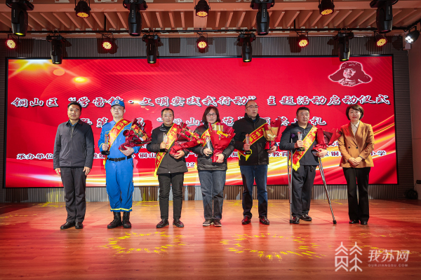 活动现场,歌舞串烧《学习雷锋好榜样》、器乐合唱《采菊东篱下》、情景剧《温暖在你身边》等节目积极向上,“铜山模范”事迹VCR展播触动人心,催人奋进。据介绍,第六届“铜山模范”以作出贡献大,群众口碑好,事迹突出感人,体现崇高精神,典型示范性强为选拔精神,他们中,既有孝老爱亲,无微不至照顾家中四个老人的朱志萍;也有敬业奉献,搜集保护民俗、文物、古迹的许玉德;还有助人为乐,坚持助残济困,一直热心社会公益事业的李勇;以及见义勇为,以花甲之躯拯救落水少女的陈先华;担当奉献,徐州市蓝天救援队城南支队的队长黄伟。他们把崇高理想信念和道德品质追求转化为具体行动,用平凡中的伟大温暖人心,是雷锋精神一代又一代不灭的践行者,是我们身边的平凡英雄。五位第六届“铜山模范”也在现场的掌声中上台领奖。