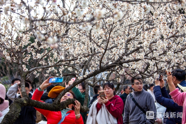 3月9日,天气晴好,气温持续回升,南京玄武湖景区,梅花正艳,早樱初绽,樱桃花、茶花、二月兰、玉兰等春花相继盛开,百花闹春的序幕已缓缓拉开序幕。玄武湖公园樱洲可以说算的上南京赏樱最佳观赏地之一了,每年到这个时候,这里到处都挤满了人。