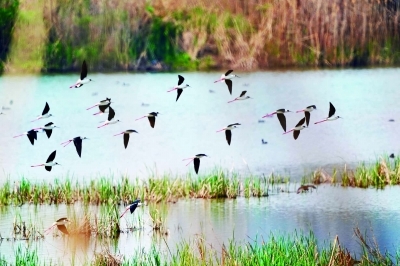 黑翅长脚鹬栖息南京绿水湾 南京日报 2024-04-16 20:38 昨天,成群的黑翅长脚鹬在绿水湾湿地公园觅食栖息,时而在空中飞舞,时而在水中嬉闹,成为春日湿地自然生态一景。据了解,黑翅长脚鹬属于国家二级保护动物。通讯员 武家敏 记者孙中元 摄