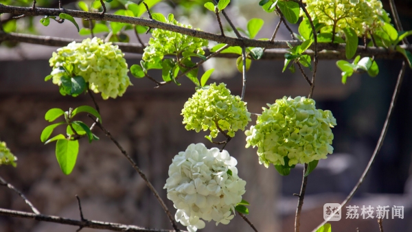 在午朝门公园这样的环境下,绣球花才能开出古韵味十足的美。