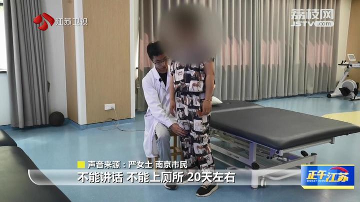 南京市民严女士告诉记者,我不能讲话,不能上厕所,躺在床上20天左右。然后到这边来康复,现在我终于站起来能走了。