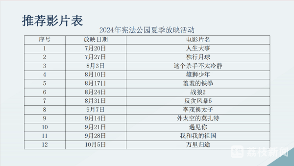摇着蒲扇、听着蝉鸣,在夏夜看场露天电影……是上一代人的儿时回忆。记者今天(7月18日)从南京市建邺区政府部门获悉:从7月20日起,每周六19:30,南京宪法公园将在中心广场连续播放12场免费露天电影。