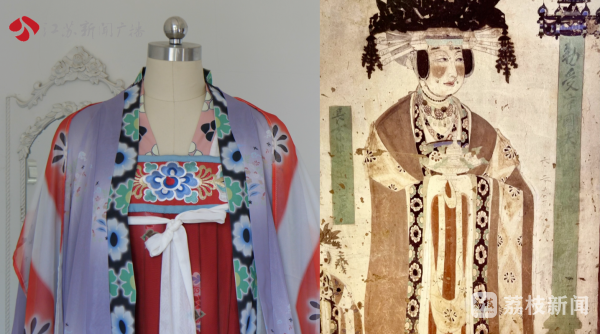 这套汉服来自于对敦煌壁画榆林窟19窟(亦是莫高窟第98窟东壁北侧第一身、第61窟东南侧第1身)凉国夫人服饰的复原。设计师张则宁从事复原汉服7年了,这是她60多套复原作品之一。反差感拉满的是,她是一名工科生。从工科转行汉服,再到汉服复原这个细分领域,再到自己的复原汉服被更多的人穿到更多的场合,张则宁也用自己的故事回答了一个问题:把爱好做成事业的人生到底是什么样的。