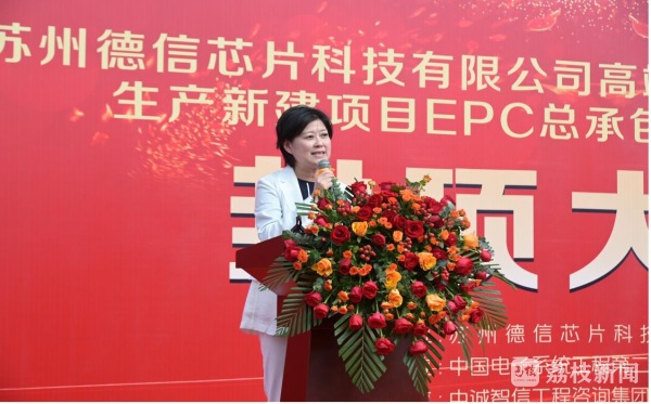 苏州德信芯片科技有限公司董事长周坚在现场发布致辞,他表示苏州德信将以此次封顶为契机,继续秉持诚信、创新、共赢的理念,进一步加大研发投入,加强技术创新和人才培养,不忘初心,牢记使命,继续前行,在半导体行业的征途上书写更加辉煌的篇章!同时,苏州德信将继续秉承“创新引领未来,科技服务社会”的企业使命,积极履行社会责任,为大而美的苏州经济发展和社会进步贡献更多的力量。