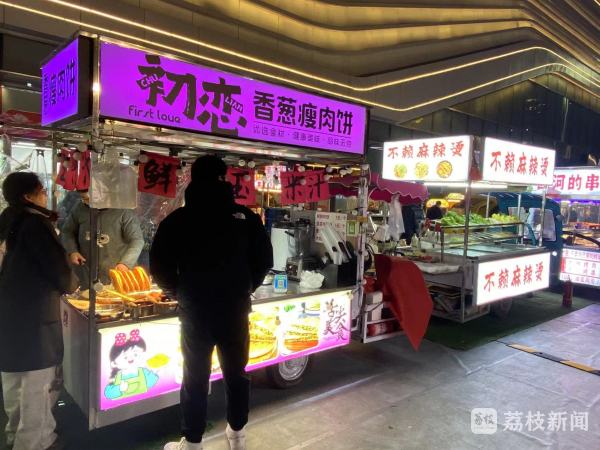 当下,夜幕降临之际已然逐步蜕变成为居民消费的“黄金时段”,《江苏省繁荣夜经济激发消费活力若干措施》也提出,支持开展夜间特定时段“集中夜市”。建邺吾悦广场在夜市管理上大胆探索创新,将零散分布的摊贩散户进行规范化、统一化精细管理,布局商亭+夜市的全新复合模式,不仅增强了流动摊贩的经营稳定性,也显著提升了整体环境的美观度与协调性。建邺吾悦广场室外街区负责人陈玮雯告诉记者:“眼下夜市的摊贩越来越多,从一开始的三十多个到现在的五十个左右,我们通过对他们进行日常管理,目前外摆场所的用电、消防等都得到了很好的保证,这也是他们愿意在这里经营的原因。”