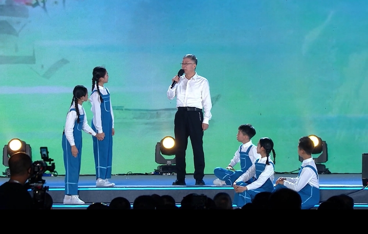 “这条大船真酷,是在帮太湖洗澡吗?”在这堂大思政课中,《幸福江河》节目的舞台上,孩子们指着屏幕上的“钢铁矩阵”好奇发问,国家卓越工程师、河海大学校友顾明笑着给出答案:“这是咱们中国人自己造的‘太湖之光’,是守护太湖的‘超级搓澡工’。”