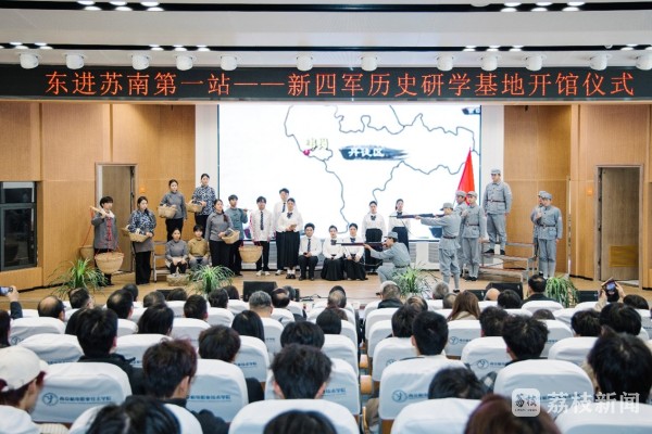 在开馆仪式上,一部由“00后”大学生自编、自导、自演的情景剧《东进!东进!东进!》精彩上演。在短短11分钟里,学生们以饱满的激情,将新四军将士不畏艰险、英勇东进的革命精神,通过生动的舞台形象展现了出来。