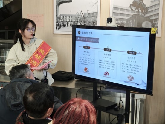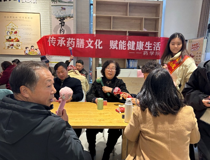 活动现场,药学院“本草润城,盐药新声”理论宣讲团成员以冬季养生为核心,为社区居民细致讲解冬季进补注意事项,结合日常饮食推荐多款家常药膳配方,将专业养生知识转化为通俗易懂的生活常识,助力居民养成科学养生习惯。