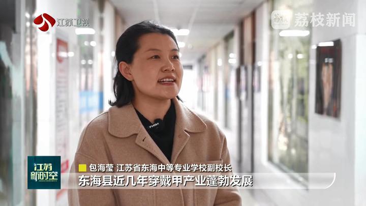 江苏省东海中等专业学校副校长包海莹说:“东海县近几年穿戴甲产业蓬勃发展。我们主动对接本地穿戴甲的头部企业,课程从设计到全生产化制作流程,再到直播销售,学生可实现毕业即就业。”