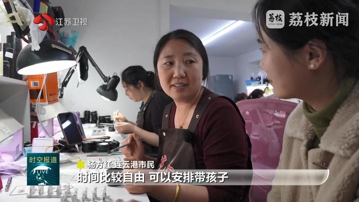 连云港市民杨方红:“时间比较自由,可以安排带孩子。工资平均每个月5000元左右,忙的时候也赚过1万多元。有活干,有钱赚。”